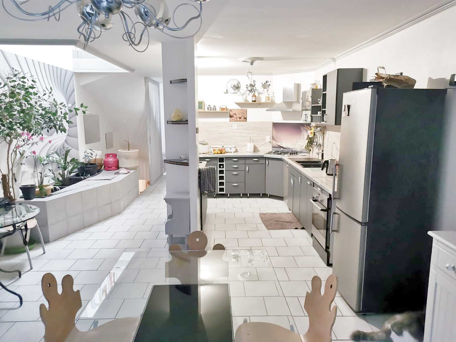 Pièce à vivre / cuisine US ( 54 m²), toilettes, 3 chambres , bureau/dressing , SDB/WC.